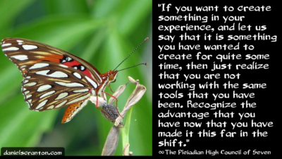 Use your focus wisely. It is a gift, and when you give yourself the gift of your focus, you are accessing your creative potential. And that is a very significant part of your shift in consciousness.