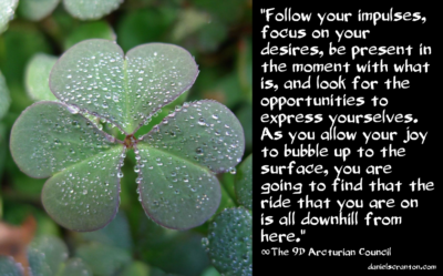 Follow your impulses, focus on your desires, be present in the moment with what is, and look for the opportunities to express yourselves. As you allow your joy to bubble up to the surface, you are going to find that the ride that you are on is all downhill from here.